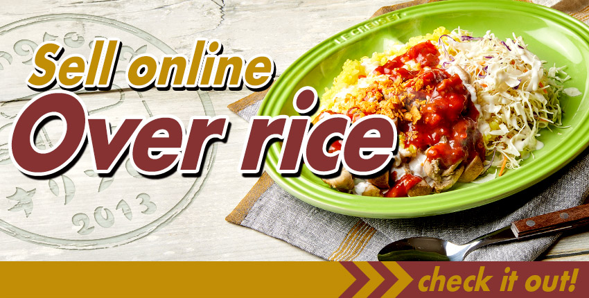 オリンピア食堂のチキンオーバーライスはインターネットでも販売しております。本場の味をご自宅でもご賞味ください。